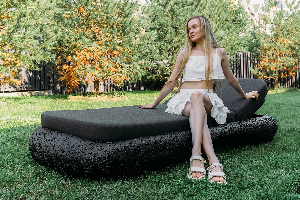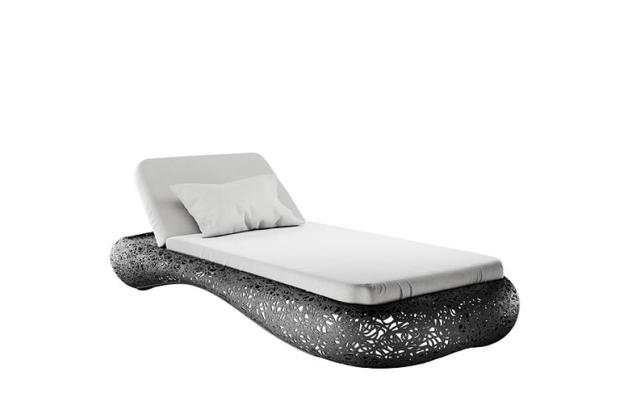 Cloud Lounge — шезлонг, который сочетает прочность и лёгкость форм. Изящное ажурное основание напоминает воздушное облако, создавая атмосферу уюта и покоя. Устойчивый к погодным условиям, он органично вписывается в сад, на террасу или к бассейну, становясь идеальным местом для отдыха и созерцания.