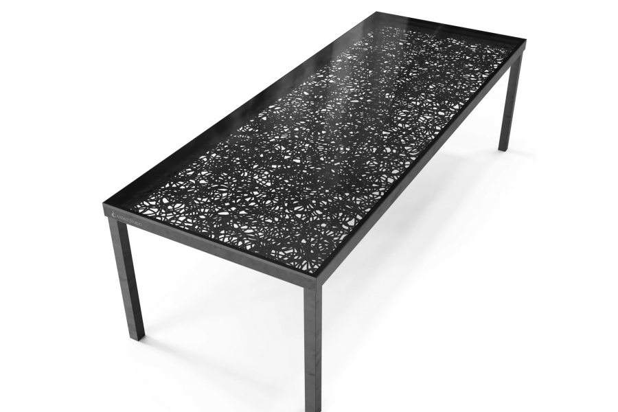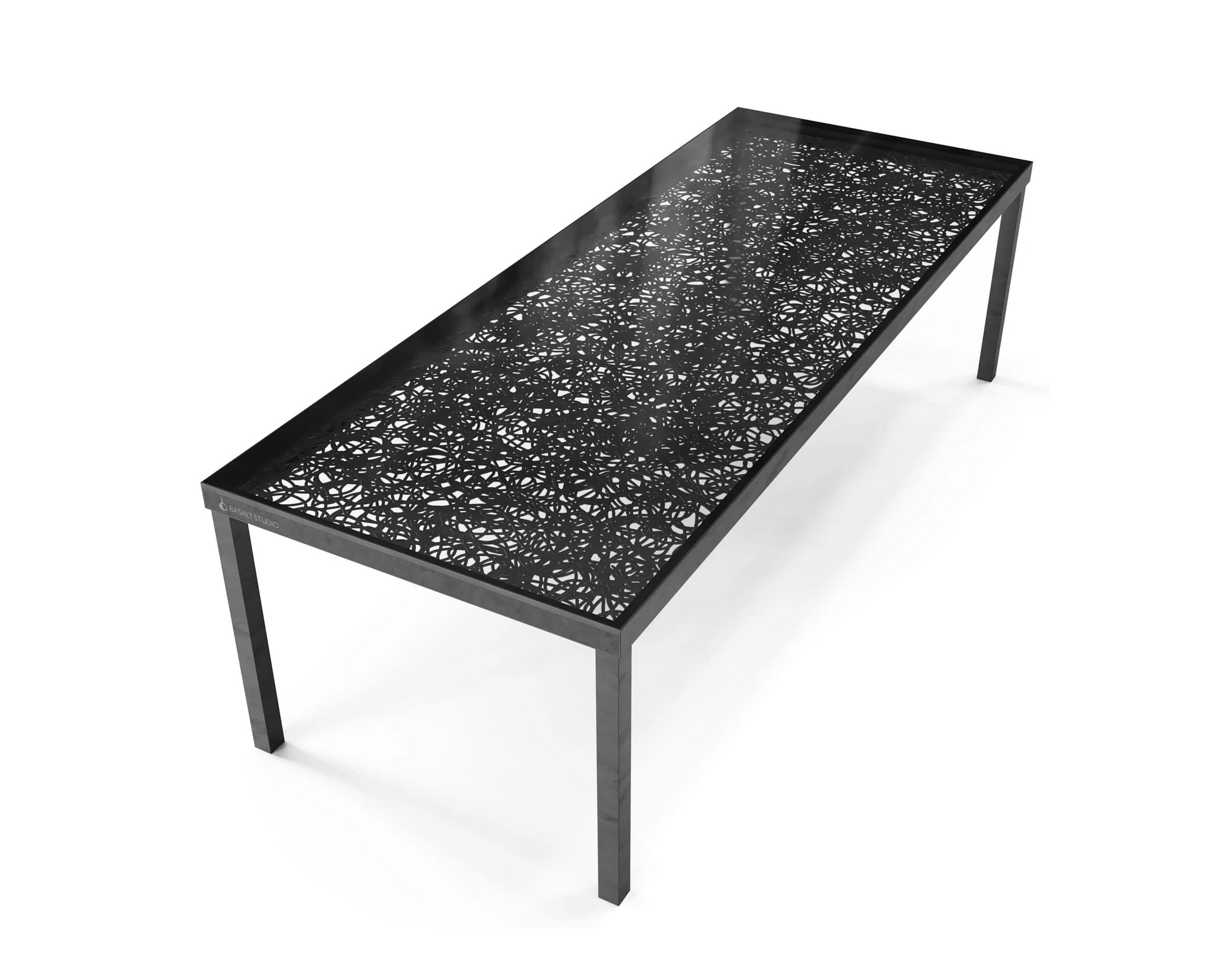 Стол Mirage — стильное решение, которое создаст особый антураж в любом вашем пространстве. Основа из нержавеющей стали обеспечивает его надежность и долговечность, а базальтовая столешница под стеклом делает образ по-настоящему уникальным.